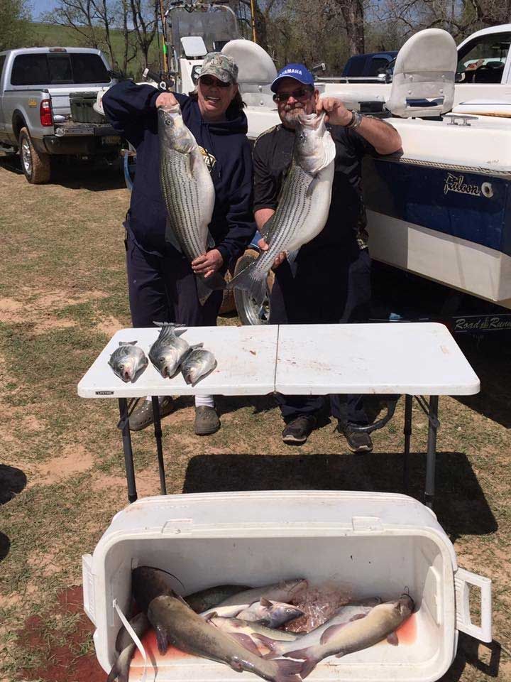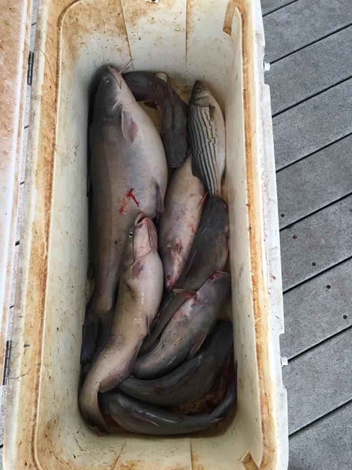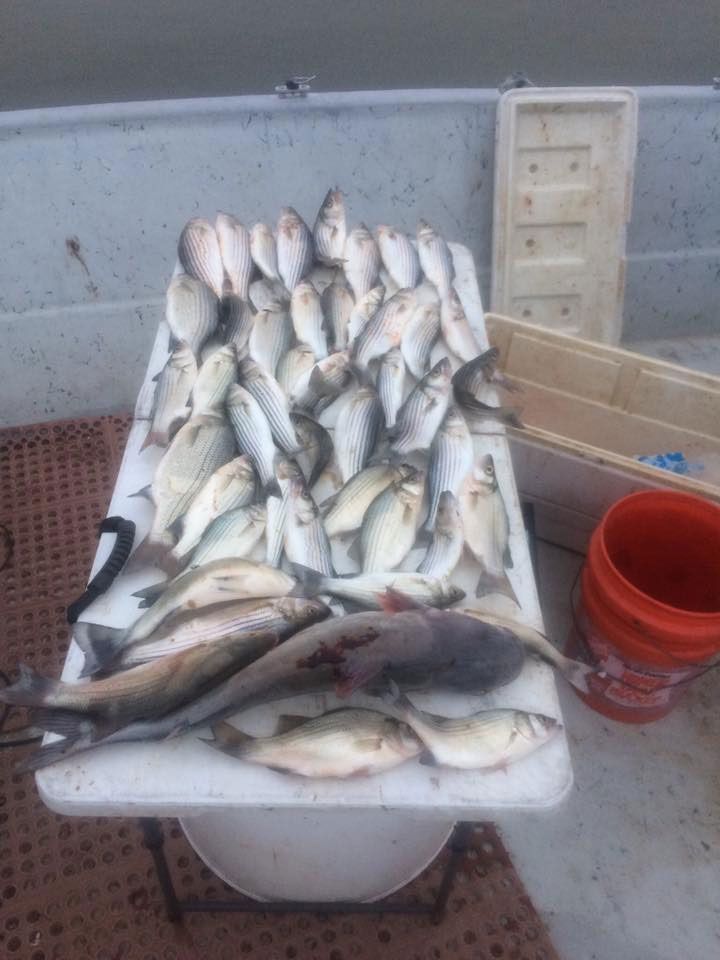 CD's did a great job. We found fish and caught them. The bait was fresh and the striper loved them. 30 stripers, 10 sand bass and twenty cats! What a great day. Thanks Clayton!